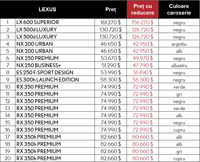 OFERTE EXCEPȚIONALE LA „LEXUS CHIȘINĂU”