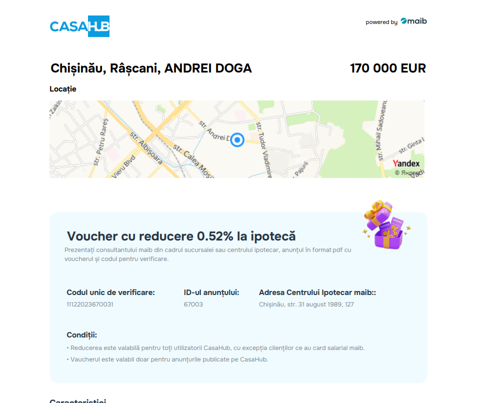 Acum, să procuri o casă nouă e mai ușor și mai avantajos decât crezi. În premieră, platforma CasaHub în parteneriat cu Centrul Ipotecar maib oferă tuturor utilizatorilor CasaHub reducere 0,52% la ipotecă. Uimitor, nu-i așa?