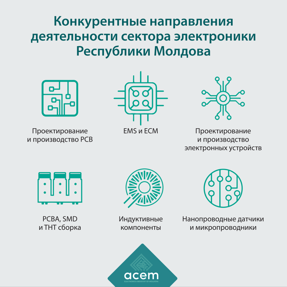 Об ACEM: Ассоциация компаний электронной промышленности Молдовы – некоммерческая организация, учрежденная в мае 2019 г. с целью представления интересов отрасли перед органами власти, содействия обмену передовым опытом, улучшения конкурентоспособности и развития электронной промышленности,через эффективное партнерство между частными компаниями, государственными органами и другими международными и национальными организациями.