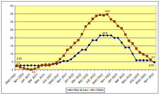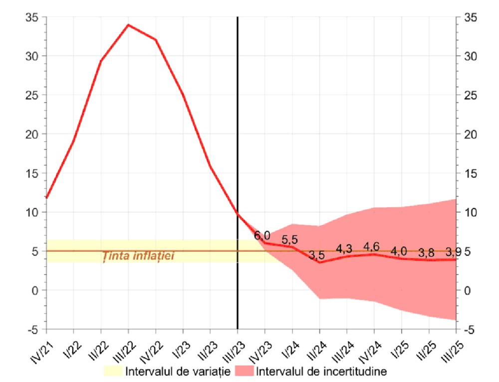 Новые прогнозы НБМ, озвученые президентом Октавианом Армашу в середине ноября 2023 г, говорят о том, что по итогам 2023 года инфляция в Молдове составит 13,6%, а в 2024 – 4,5% за год.